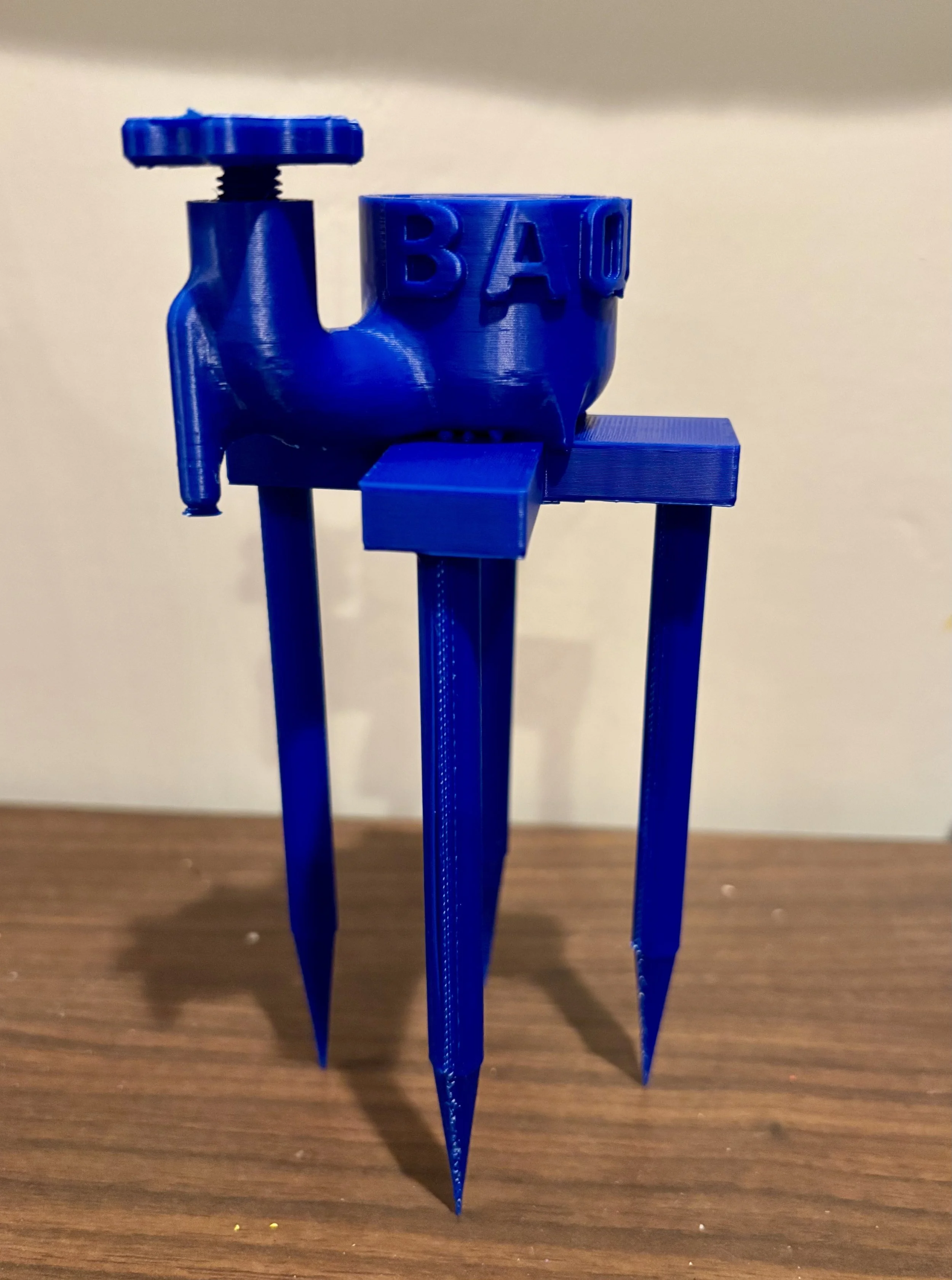 BAqua is a 3D Printed Bottle Drip Irrigator. This self-watering device is made from recycled materails to collect rainwater keeping plants healthy while saving water and reducing waste.